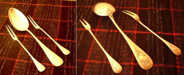 ◊ Aufschnittgabel ◊ Gemüselöffel ◊ Kuchengabeln ◊ Soßenkelle ◊ Tafelgabel ◊ Tafelöffel ◊ Tafelmesser ◊ Tortenheber ◊ Tafelbesteck ◊