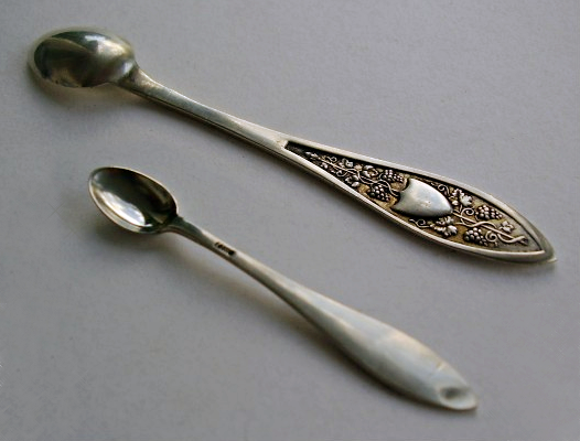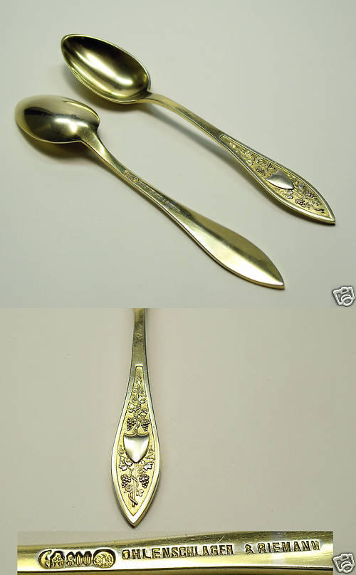 800er Silber. Länge: ~10cm Weinlaub-Dekor, vergoldet. |