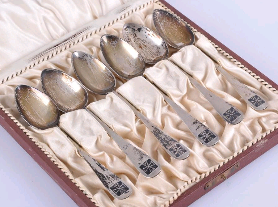 Das zeitgleiche Schwestermuster mit geschwärztem Eisernen Kreuz und den Jahreszahlen 1914 bzw. 1915 kündet von Patriotismus und Krieg mit bald einsetzender Produktionsbeschränkung. Designed simultaneously with Muster Nr. 555, the sister pattern with blackened Iron Cross and the years 1914 and 1915 tell of patriotism and war soon with intercurrent production limit.