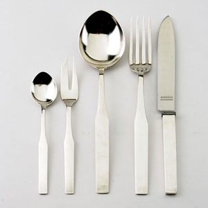 Schlichte, rechteckige Schäfte, Laffen der Esslöffel nach vorn spitz zulaufend.