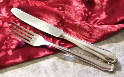 90er Silberauflage. Messer: ~21.70cm; Gabel: ~19cm. |