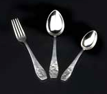 Besteckgarnitur für Kinder Nickel silber, silber. Gabel: 16cm; Löffel: 16.70cm; kleiner Löffel: 13cm. |