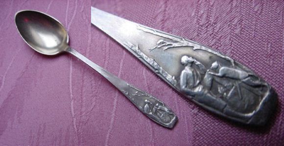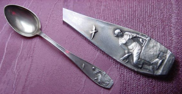 Mokkalöffel (Gestiefelter Kater) 800er Silber. Länge: 11.30cm. Puss in Boots |